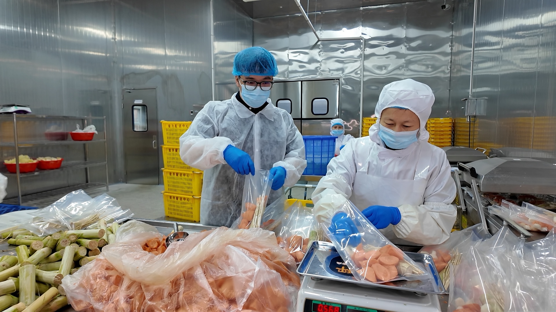 “今天我全副武装,穿上无尘服,带大家走进我们的净菜无菌车间。我手上的土豆丝、胡萝卜都经过了切配和清洗,只要打开真空包装就可以直接烹饪。我们还有椰子鸡、寿喜锅、蔬菜沙拉等组合包供应餐馆使用。”最近,罗培霖给视频号录制了净菜视频,科普了蔬菜行业的发展前沿。