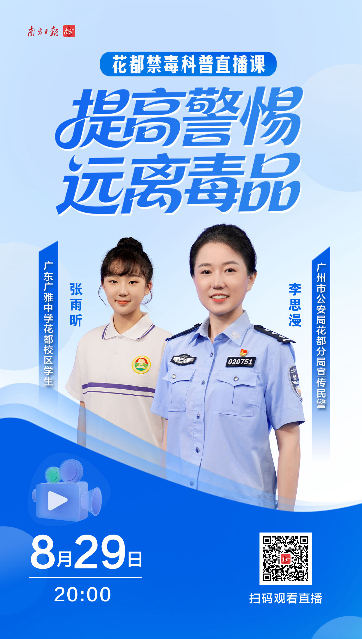 安全不放假,迎接新学期。8月29日晚八点,广州市公安局花都分局的宣传民警李思漫和特邀学生张雨昕在南方+客户端线上为大家带来禁毒科普知识直播课配资炒股安全平台查询,通过探讨一个个青少年身边的新型吸毒现象案例,告诉大家毒品危害以及预防措施,更加提高警惕保护自己,直播观看人数超55万人次。